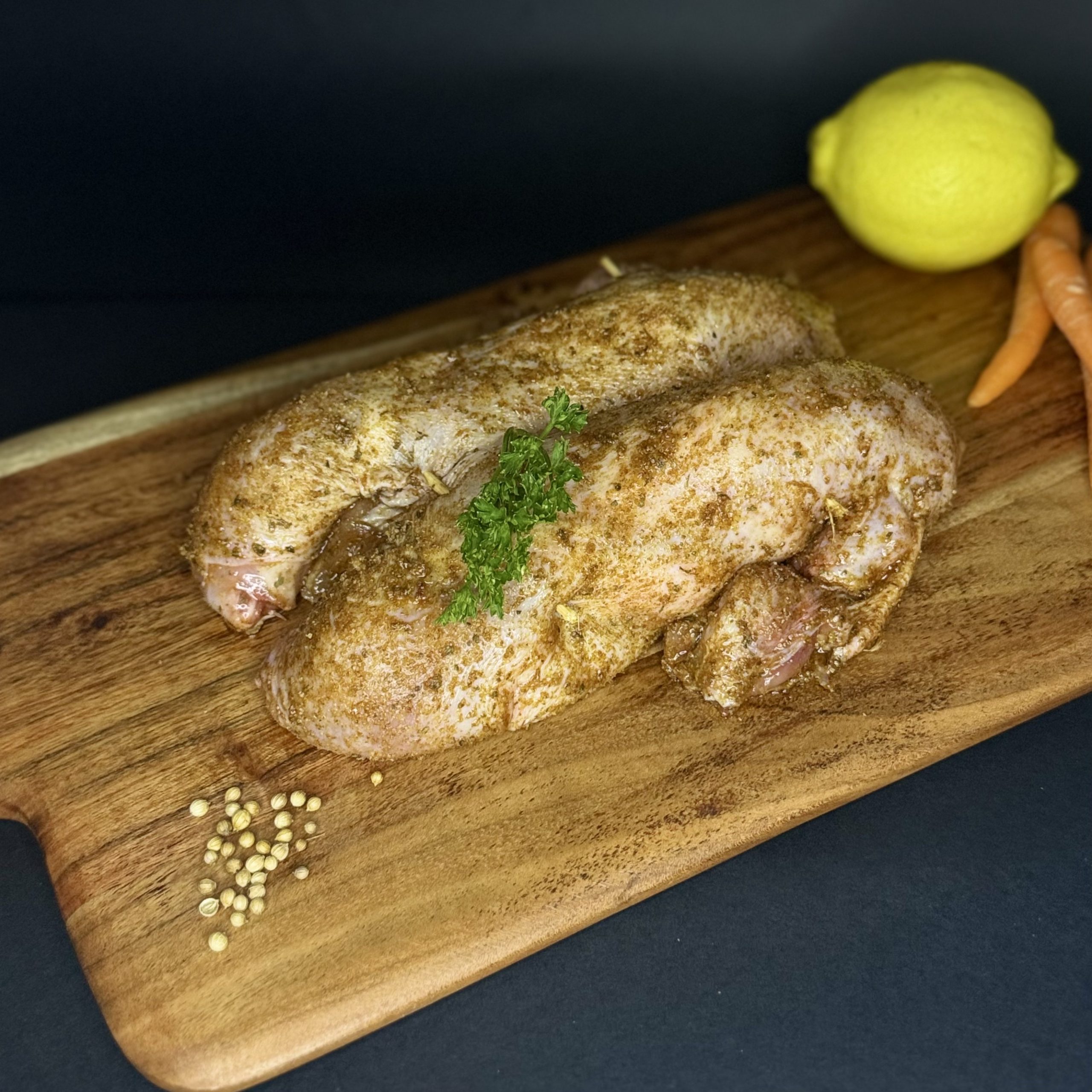 A succulent whole deboned chicken available in a variety of delicious flavours: Peri Peri, Lemon & Herb, Six Gun Grill Spice, Plain, or Sweet & Sticky BBQ. Perfect for roasting, grilling, or a tasty meal any time.